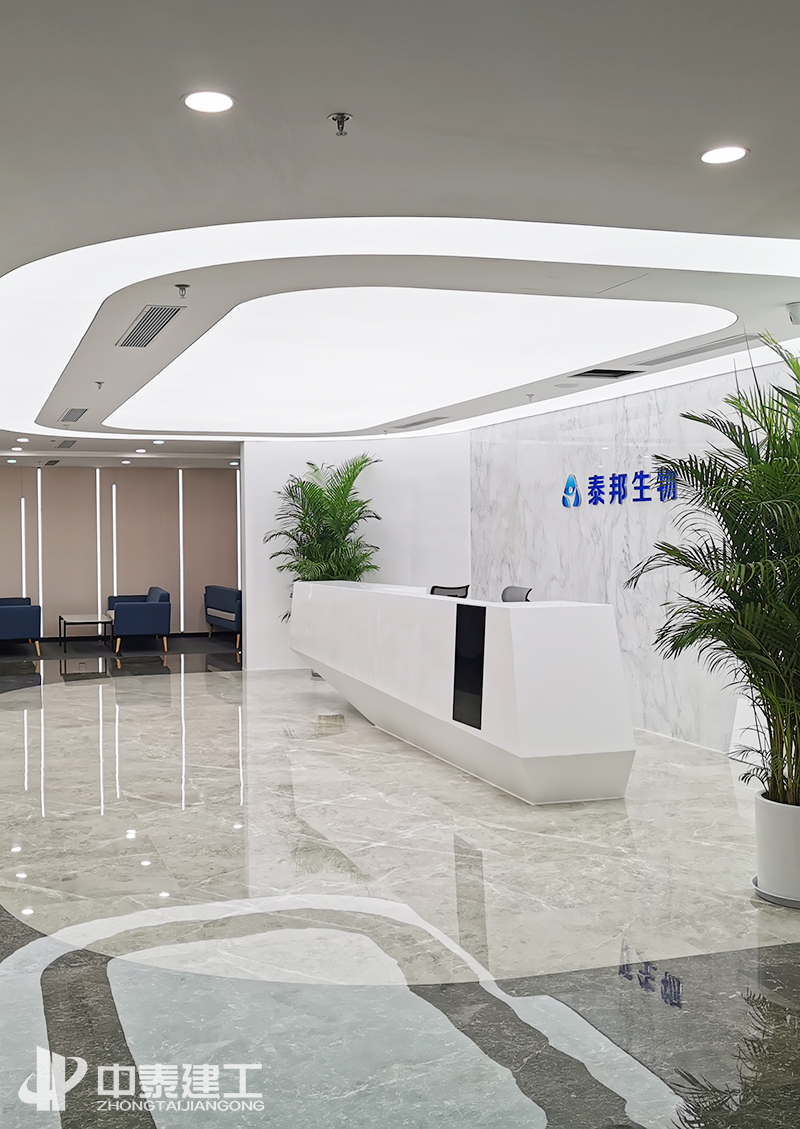 泰邦生物办公室装修工程项目位于北京市朝阳区朝阳公园路19号佳隆国际大厦,面积1400㎡,包括办公空间和接待空间两部分。整体空间的定位以 现代、商务、生态、品质 为基本思路来营造整体空间氛围。