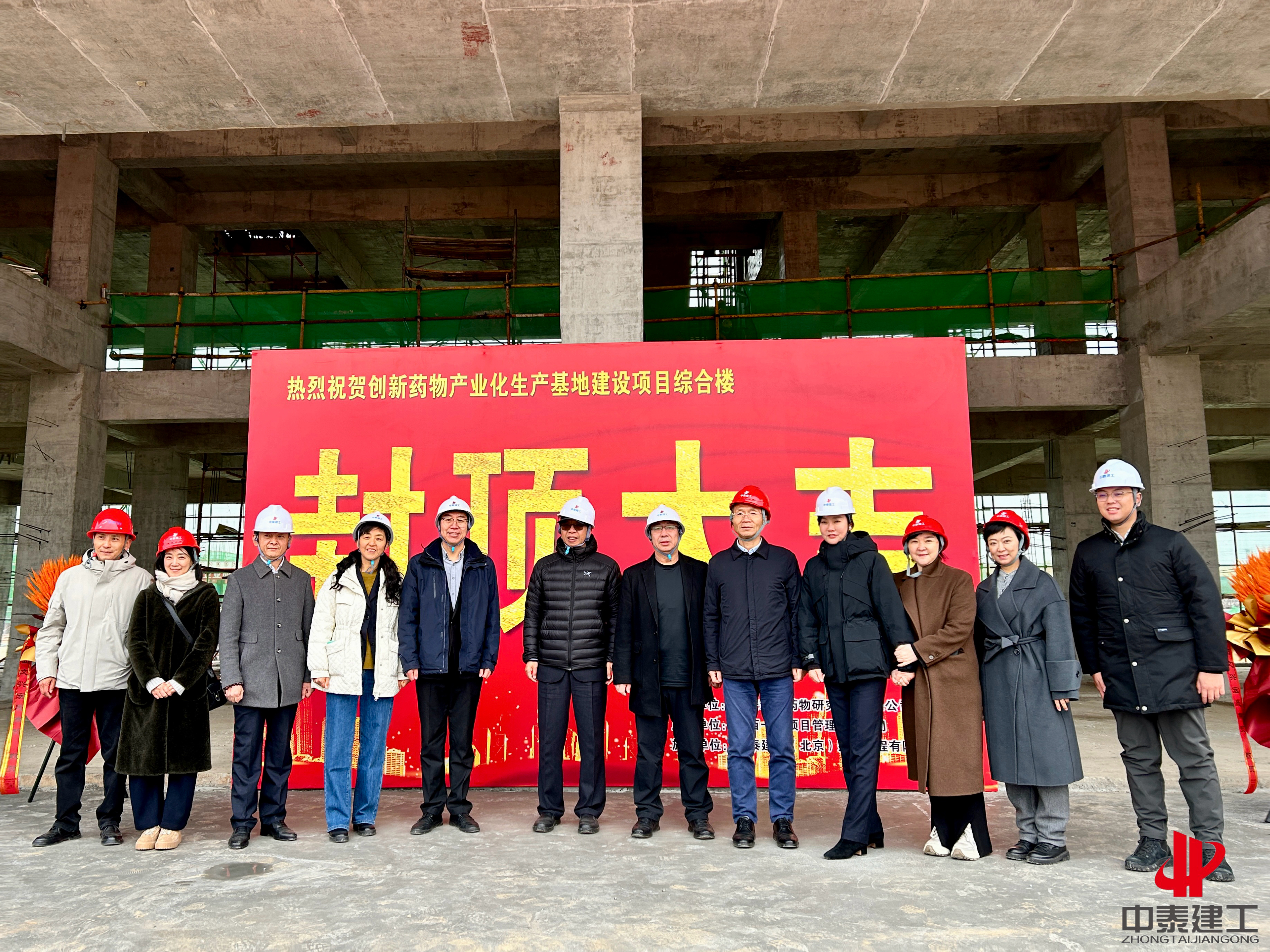 自项目开工以来,中泰建工严格把控施工质量与安全,科学统筹施工进度,组织专业团队高效推进各项建设任务。面对项目建设中的各项挑战,全体建设者凝心聚力、攻坚克难,最终顺利实现主体结构封顶目标。作为重要的生物医药产业配套项目,该创新药物产业化生产基地建成后,将为乙肝、肝癌患者提供更多可及的高质量创新药物,助力解决重大疾病“用药难”的问题。为生物医药产业高质量发展注入强劲动力。此次封顶不仅是项目建设的关键节点,更是中泰建工践行企业担当、赋能健康产业发展的有力印证。